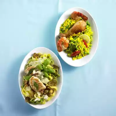 Wash the meat and dab dry. Place them next to each other on a board, place a slice of ham and 2 sage leaves on each and fold them over. Grate the Parmesan, up to 10 g for garnishing. Peel onion and garlic.