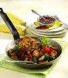 Add lemon slices and olives and cook for about 5 minutes. Season to taste and if necessary arrange with fresh herbs. Ribbon noodles taste good with it