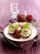 Place in a bowl and immediately stir in 1 egg. Let the mixture cool down. Peel onion and cut into cubes. Peel garlic and press it through a garlic press. Wash the asparagus, cut off woody ends and cut asparagus into pieces.