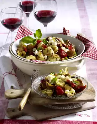 Mix tortellini, vegetables and the hot marinade. Cover and leave to stand for at least 1 hour.