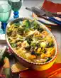 Although the ingredients are already cooked, the casserole takes about 1 hour in the oven. So the escalopes become nice and tender. Also works great with chops