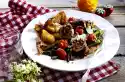 Peel and wash the Jerusalem Artichoke, cut into large pieces and cook in boiling salted water for about 20 minutes. Clean, wash and cut the spring onions into three. Wash fish, dab dry and cut into equal slices.
