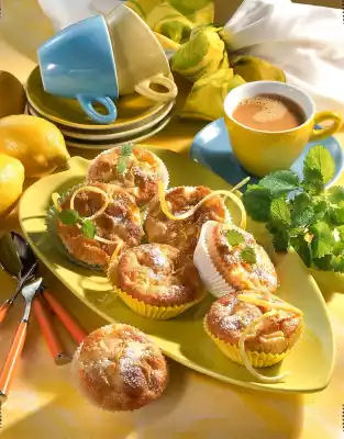 Dust the apple muffins with 6 g diabetic sweetener. Decorate with lemon peel and lemon balm if desired