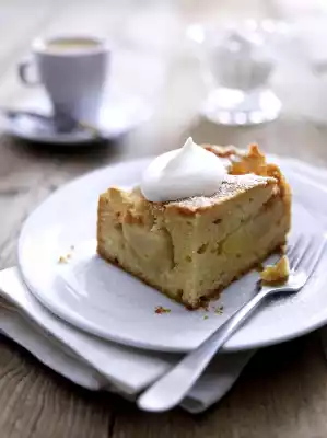 Turn down the oven temperature (electric oven: 150 °C/circulating air: 125 °C/gas: level 1-2), continue baking for approx. 40 minutes. Leave to cool down. Then dust the apple cake with icing sugar. Whipped cream is delicious with it.