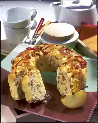 Fold 3/4 of the apples and nuts into the dough. Pour into a greased springform pan (22 cm Ø/ just under 1 3/4 litre capacity)) with a tube bottom insert and smooth it down. Sprinkle the remaining apples and nuts on the dough and bake in a preheated oven (electric range: 175 °C/ gas: level 2) for 40-45 minutes. Let the finished cake rest in the pan for approx. 20 minutes. Then turn out of the tin and let it cool down on a cake rack. Results in approx. 20 slices