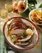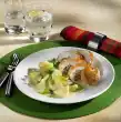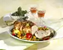 Fry in hot fat for about 3 minutes. Remove from the pan and set aside. Sauté the diced onion in the frying fat. Add rice and fry until transparent. Mix stock and tomato paste and pour on. Let the rice swell for 20 minutes in the closed pan. In the meantime clean, wash and chop the peppers and zucchini. Put chicken cubes, bell peppers, zucchini and one bay leaf each alternately on shashlik skewers. Fry in the remaining oil while turning for about 15 minutes. Wash parsley, dab dry and chop.