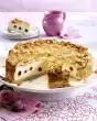 Whisk the curd, mascarpone and 2 tbsp. sugar with the whisk of the hand mixer until thick and creamy. Spread the cream loosely over the cake, chill for approx. 30 minutes. Sort the berries. Spread the lavender and berries over the cake and chill until serving. Rub lemon zest over the cake before serving.