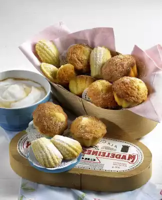 Pour a third of the dough into the madeleine tray or half of the dough into the brioche tray. Bake the madeleines in a preheated oven (electric cooker: 200 °C/ convection oven: 175 °C/ gas: level 3) for 10-12 minutes or the brioches at the same temperature for 15-20 minutes. Bake the remaining dough in the same way. Allow the cake to cool for 5 minutes, then turn out of the moulds. Let them cool down. Sprinkle with sugar or icing sugar