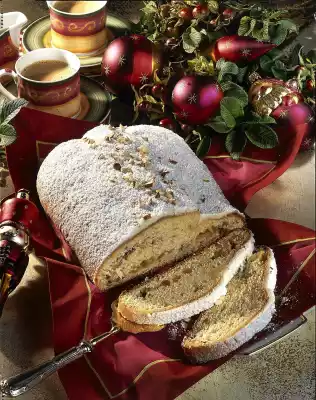 Place the Stollen on a baking tray lined with baking paper and bake in a preheated oven (electric: 175 °C/ gas: level 2) for 55-60 minutes. After about 45 minutes of baking time cover the stollen with aluminium foil. Take the stollen out of the oven and place it on a rack to cool down. Melt the remaining fat. Spread 1/3 on the still warm stollen and sieve 1/3 icing sugar on top. Repeat the process twice more. Sprinkle with remaining almonds