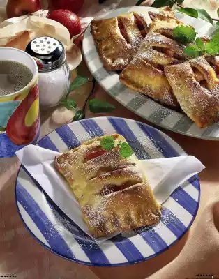 Cut the pockets a little bit. Place on a baking tray lined with baking paper. Bake in a hot oven (electric cooker: 200 °C / convection oven: 175 °C / gas: level 3) for about 10 minutes. Mix egg yolk and 1 tbsp. milk. Brush pockets with it and bake for another 5-10 minutes. Let cool off. Sprinkle with 1 tsp (6 g) fructose