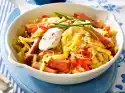 Wash oregano and shake dry. Chop the leaves finely. Add the Kabanossi, oregano and mozzarella to the tomatoes and heat until the mozzarella has melted. Season to taste with salt and pepper.