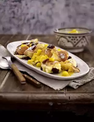 Peel and finely chop the ginger. Peel the mango, cut the flesh off the stone and dice finely. Caramelise 50 g sugar in a pot until golden. Deglaze with orange juice. Add ginger, bring to the boil and simmer until the caramel has dissolved.