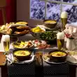 Heat 1 tablespoon of clarified butter in 2 coated pans (24 cm Ø). Pour in half of the dough each. Bake at low heat for 2-3 minutes, then sprinkle half each of almonds and sultanas. Bake the slices until golden, then quarter them with a spatula, turn them over and bake them from the other side until golden. Then carefully tear into pieces with 2 forks. Sprinkle with 1 tbsp. icing sugar each, let caramelize slightly while turning