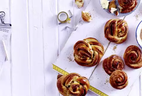 Line two baking trays with baking paper. Mix cinnamon and brown sugar in a bowl. Just before you roll out your dough: Melt 100 g of butter in a saucepan over a low heat. Remove from the heat and let it cool down a little.