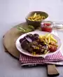 Add onions and mushrooms and fry for about 6 minutes. Season with salt and pepper. Wash the meat and dab dry. Heat oil in a pan. Fry the meat on all sides over medium heat for 10-15 minutes.