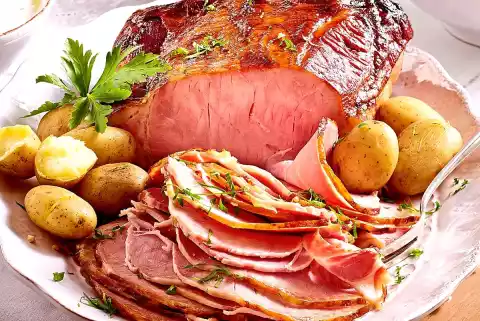 Rinse meat, dab dry and place on the fat pan. Bake in the preheated oven (electric cooker: 180 °C/circulating air: 160 °C/gas: see manufacturer) for approx. 1 3⁄4 for 2 hours.