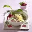 Place the cured pork loin and a cup of water in a roaster and, without a lid, roast in a preheated oven (electric cooker: 200 °C/ convection oven: 175 °C/ gas: level 3) for approx. 1 hour. In the meantime crush the peppercorns coarsely. Wash the thyme, rosemary and parsley and chop except for a little bit for garnishing. Mix pepper, herbs and oil. After 30-40 minutes, brush the meat with the pepper mixture and fry until done. Serve the smoked pork hot or cold, garnished with remaining herbs