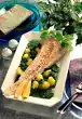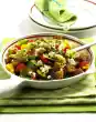 Fold in the remaining oil. Mix the salad with the vinaigrette. Arrange meat and salad on plates.