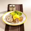 Process the rest of the strudel dough, meat, 1 tablespoon of chanterelles and crème fraîche in the same way. Brush with remaining melted butter and bake in a preheated oven (electric range: 200 °C/ convection oven: 175 °C/ gas: level 3) for 10-12 minutes. In the meantime, put peas in 125 ml boiling salted water, bring to the boil, cover and cook over medium heat for about 3 minutes. Then drain, drain well. Heat the remaining chanterelles, 2 tablespoons of butter and peas, season with salt and pepper. Arrange the smoked pork loin in a strudel leaf and vegetables on plates garnished with parsley
