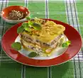 Mix the potatoes, kohlrabi, leek and celery and place in a greased casserole dish. Peel the garlic and press it through a garlic press. Beat the garlic, sour cream, eggs and milk. Season vigorously with salt, pepper and nutmeg.