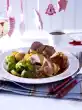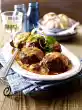Boil 175 ml of water. Season with 1/4 teaspoon salt. Remove the pot from the heat, add the milk and stir in the puree flakes with a wooden spoon. Season sauce with sugar and mustard. Arrange puree, meat and sauce and garnish with parsley.