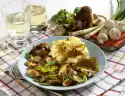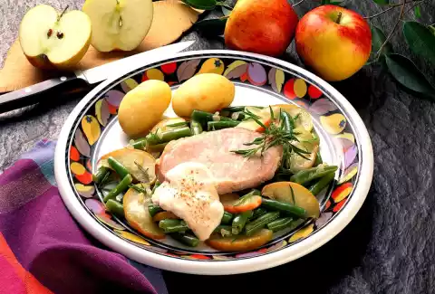 Cut apples into thin slices. Add the slices and apple slices to the vegetables and cook for another 5 minutes. Season to taste with a little pepper. Drain potatoes, peel and arrange with vegetables and meat on preheated plates.