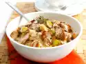 3) Heat the oil in two large coated pans. Fry the smoked pork in them vigorously. Take them out and spread them on a baking tray lined with baking paper. Mix together all the mustard, breadcrumbs and sugar. Brush the smoked pork with it. Bake under the hot grill of the oven for 3-4 minutes. Arrange everything. Garnish with the rest of the rosemary