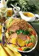 Clean, wash and cut the tomatoes into large pieces. Add to the spinach shortly before the end of the cooking time. Keep vegetables warm. In the meantime heat oil in a pan. Fry the potatoes until golden brown all around. Season with salt and sugar. Arrange meat, vegetables and potatoes on a plate. Garnish with rosemary if desired.