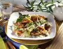 Peel onions and cut them into rings. Cut the bacon into cubes. Wash meat and dab dry. Bring Brussels sprouts to the boil in salted water and cook over medium heat for 8-10 minutes. In the meantime, drain the bacon in a pan, remove and put aside.