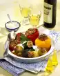 Peel, wash and roughly grate the potatoes. Peel onion and cut into fine cubes. Pluck the thyme leaves from the stems. Cut olives into slices, chop cheese roughly. Put the grated potatoes, onion, thyme and minced meat in a bowl. Add the egg and work everything through with the dough hooks of the hand mixer.