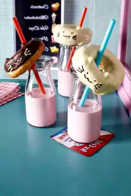 For the decoration, melt the remaining couverture in the bowls again. Pour into small freezer bags. Cut off a small corner each and spray cheeky cat faces on the donuts. Leave to dry.