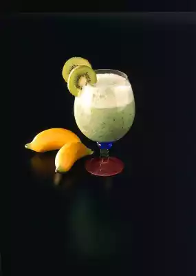 Peel the kiwis and banana and cut into pieces. Puree together with lemon juice and honey in a mixer. Pour into a cocktail glass and fill up with mineral water. Serve garnished with 2 kiwi slices