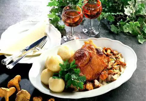 Arrange on a plate with chanterelle cream. Garnish with parsley. Dumplings taste good with it.