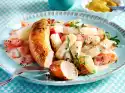 Meanwhile wash, clean and finely dice the tomatoes. Cut remaining onions into very thin strips. Mix both with the rest of the parsley. Season with salt, chili and sumac. Serve with onion salad.
