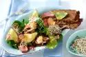 For the avocado topping, peel and halve the onion and cut into fine strips. Wash and halve the tomatoes. Halve the avocado, stone it, remove the flesh from the skin with a tablespoon and dice it roughly.