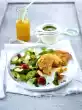 Wash 4 fine kohlrabi leaves and cut into strips. Cook the kohlrabi in boiling salted water for about 5 minutes. Stir soup powder into 400 ml boiling water and cook for 2 minutes at low heat. Drain rice and kohlrabi and arrange on plates with the meatballs. Pour sauce over vegetables and meatballs. Garnish rice with kohlrabi leaves. Sprinkle the sauce with coarse pepper and garnish with a basil leaf