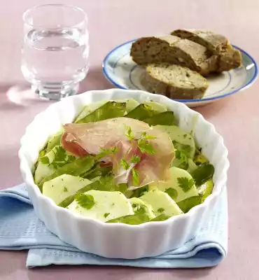Whisk together the egg, milk and chervil. Season with salt and pepper. Layer kohlrabi and sugar snap peas alternately in a greased casserole dish (approx. 1 litre capacity). Spread egg milk on top and cook in the preheated oven (electric cooker: 175 °C/ convection oven: 150 °C/ gas: level 2) for about 30 minutes.