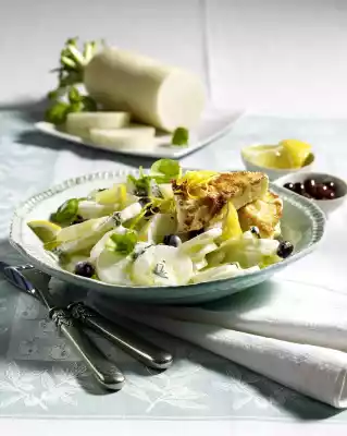 First cut the feta horizontally, then quarter each one diagonally. Turn the corners in flour and press well. Fold the radish into the kohlrabi, cover and cook for 2-3 minutes