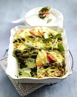 Alternately layer spinach, slices of ham, tomatoes, béchamel sauce and the remaining kohlrabi slices, finishing with béchamel sauce. Grate the cheese directly on top. Sprinkle with sunflower seeds. Bake in a hot oven for about 40 minutes.