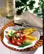 Season with salt and pepper, pour on 150 ml broth, cover and stew for 10-15 minutes. Wash and quarter the tomatoes and remove the seeds. Cut tomatoes into narrow slices. Add them to the cabbage vegetables about 2 minutes before the end of the cooking time and toss them in.