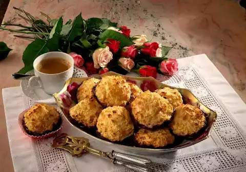 Bake in the preheated oven (electric oven: 200 °C/ gas: level 3) for about 10 minutes. Then lower the temperature to 175 ° C (gas: level 2) and bake for another 10 minutes. Remove the coconut macaroons and let them cool completely on a cake rack.