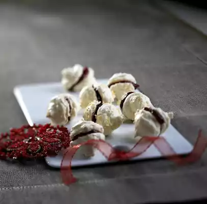 Bake the trays one after the other in a preheated oven (electric range: 150 °C/ convection oven: 125 °C/ gas: level 1) for 15-20 minutes, allow to cool. Stir jam until smooth. Put 1 blob on the bottom of each half of the tuffs. Place the other tuffs with the underside on top and press down lightly. Shelf life 1-2 weeks when stored in a cool and dry place
