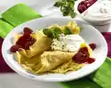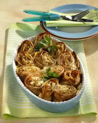 Heat 1 tablespoon of oil in a coated frying pan (26 cm Ø). Bake 4 thin pancakes one after the other from the dough. Cover each pancake with 2 slices of ham, spread the sauerkraut on top and roll up