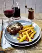 Heat 15 g fat in a pan and fry the eggs in it. Arrange on plates with lobscouse and a rollmop on each plate. Sprinkle with parsley and garnish. Add remaining beetroot and gherkins.