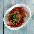 Clean, peel and finely dice the carrots and add to the lamb, simmer for about 8 minutes. In the meantime clean and wash the zucchini and bell peppers and also dice them finely. Then add them to the pot and cook for another 5-8 minutes.