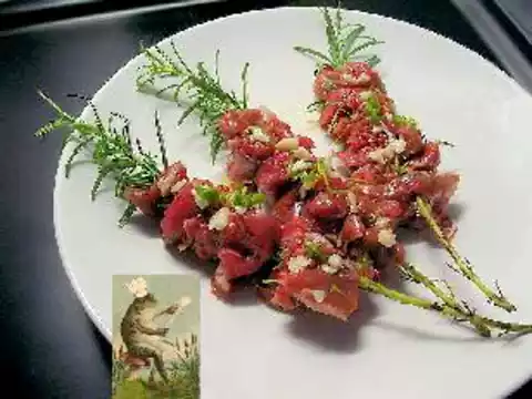 As a side dish, I recommend for purists a homemade baguette, possibly with tomato butter and a light green salad with a dressing of olive oil, white balsamic vinegar, sea salt and black pepper (mill).
