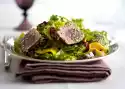 Cut the lamb fillets into slices and arrange on the salad. Spread orange-nut marinade on top. Serve garnished with orange slices as desired.
