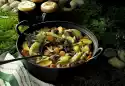 Peel and chop the shallot. Drain the beans. Heat butter. Sauté the beans and shallot. Drain and add the potatoes. Season with salt, pepper and pink berries. Wash, chop and fold in thyme