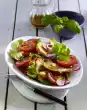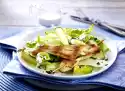 Arrange salad and dressing on plates