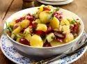 Stir in sesame seeds and diced shallots. Pluck the Bündnerfleisch into pieces. Dice the beetroot. Clean, wash and drain the salad. Mix lamb's lettuce, beetroot, Bündnerfleisch and vinaigrette in a bowl and serve.